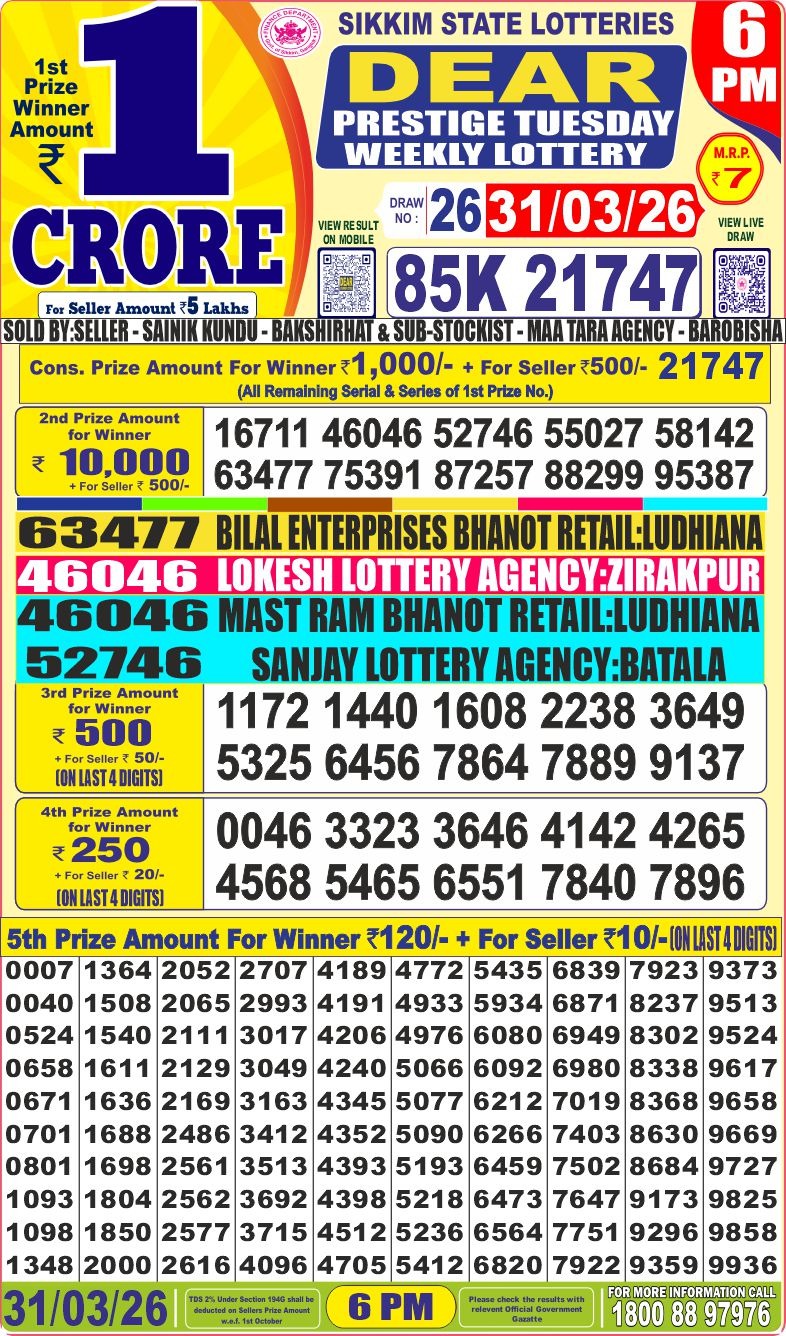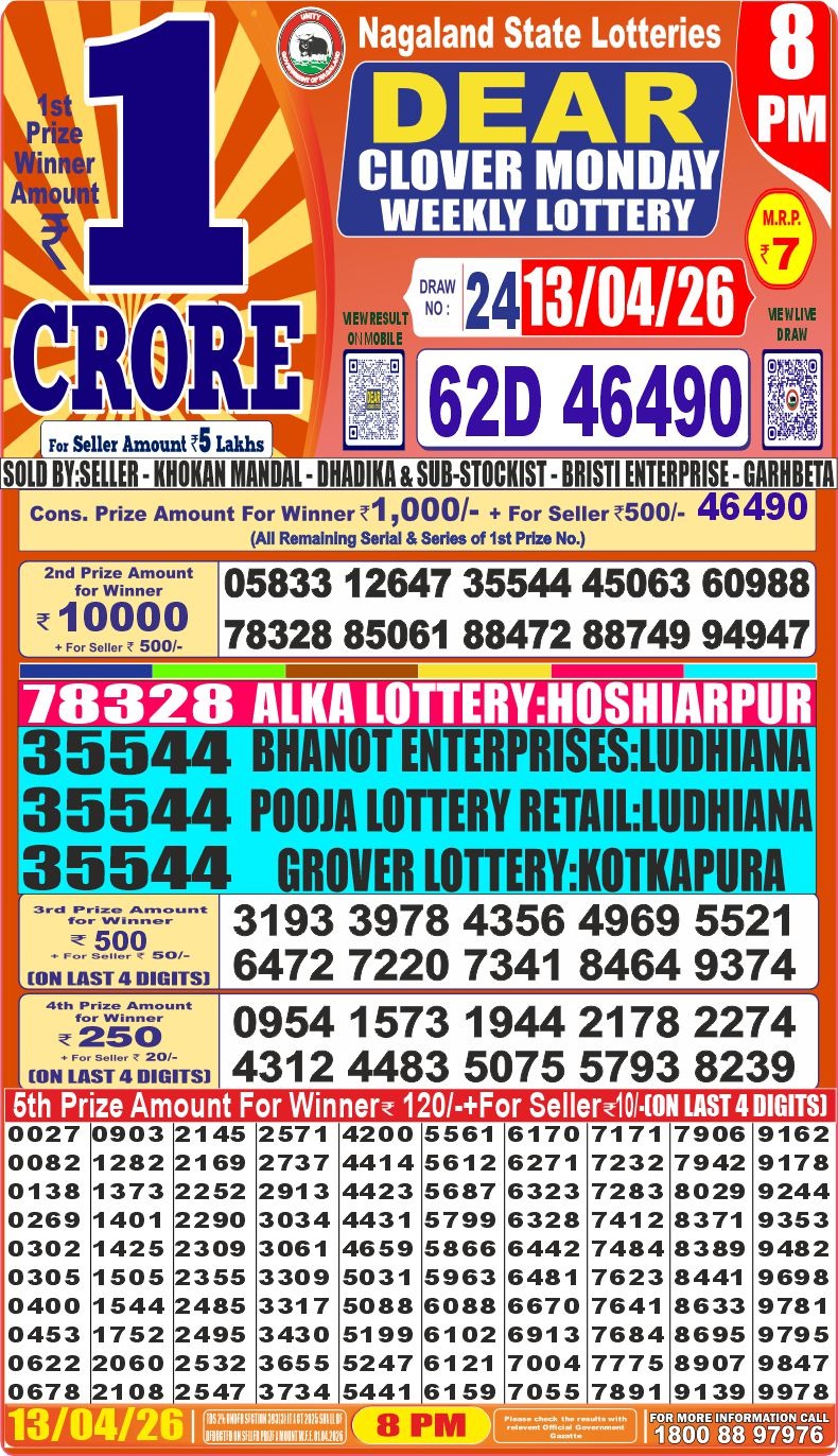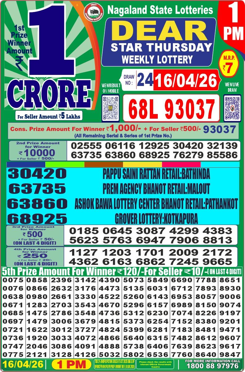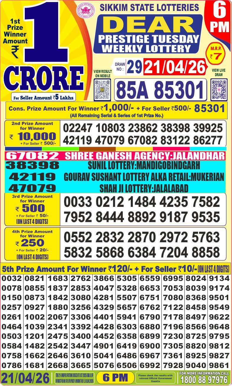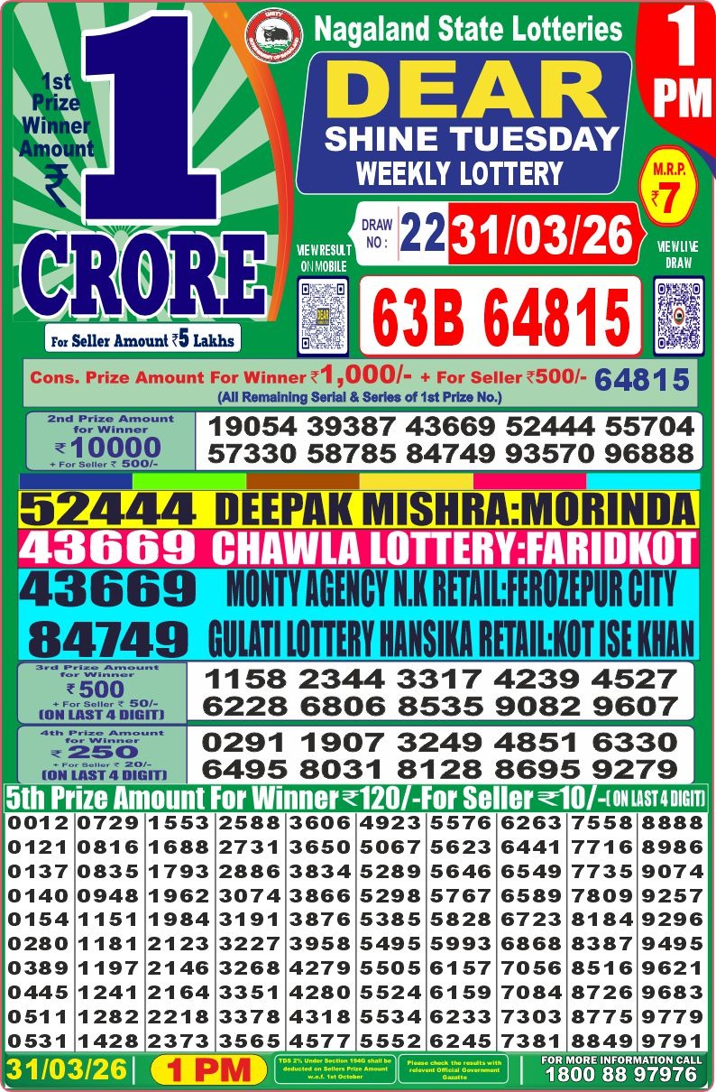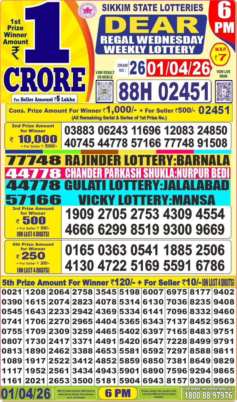 It is information that tomorrow ( 26/01/2024) There will be no any lottery draw today the ocassion of Republic Day. Have a nice day
