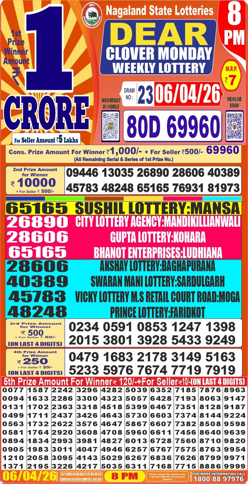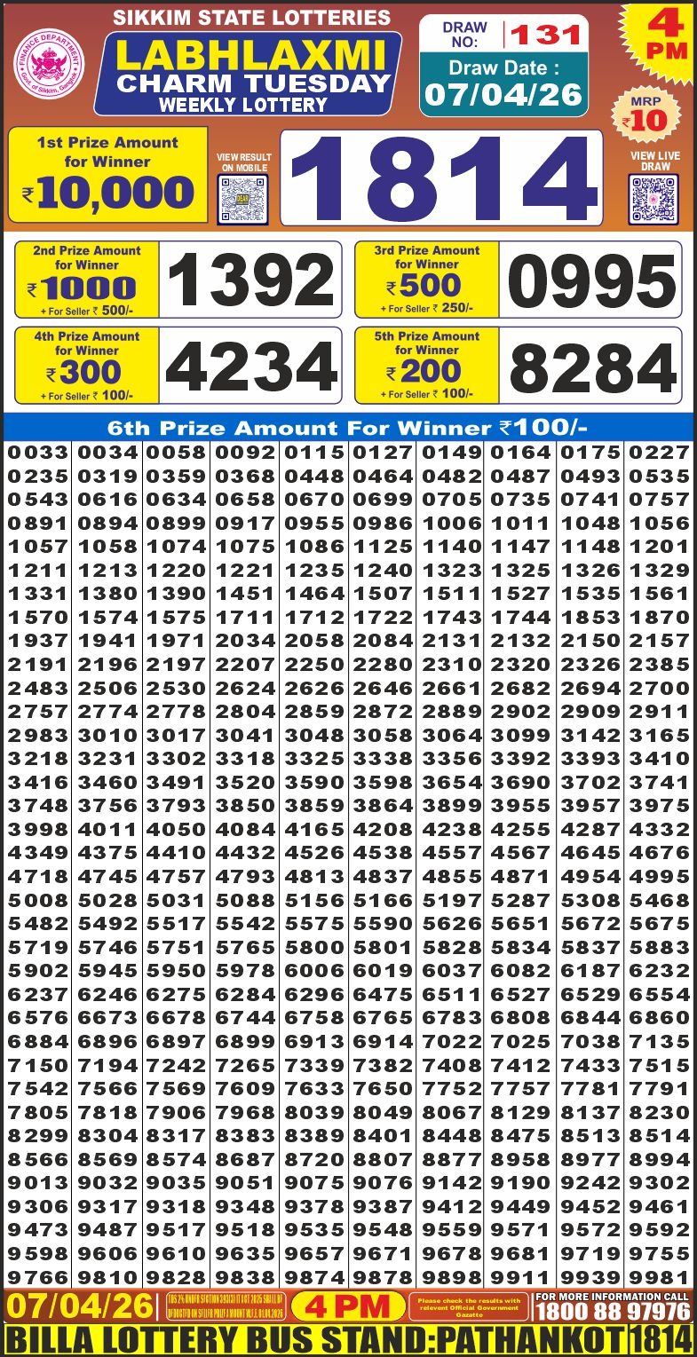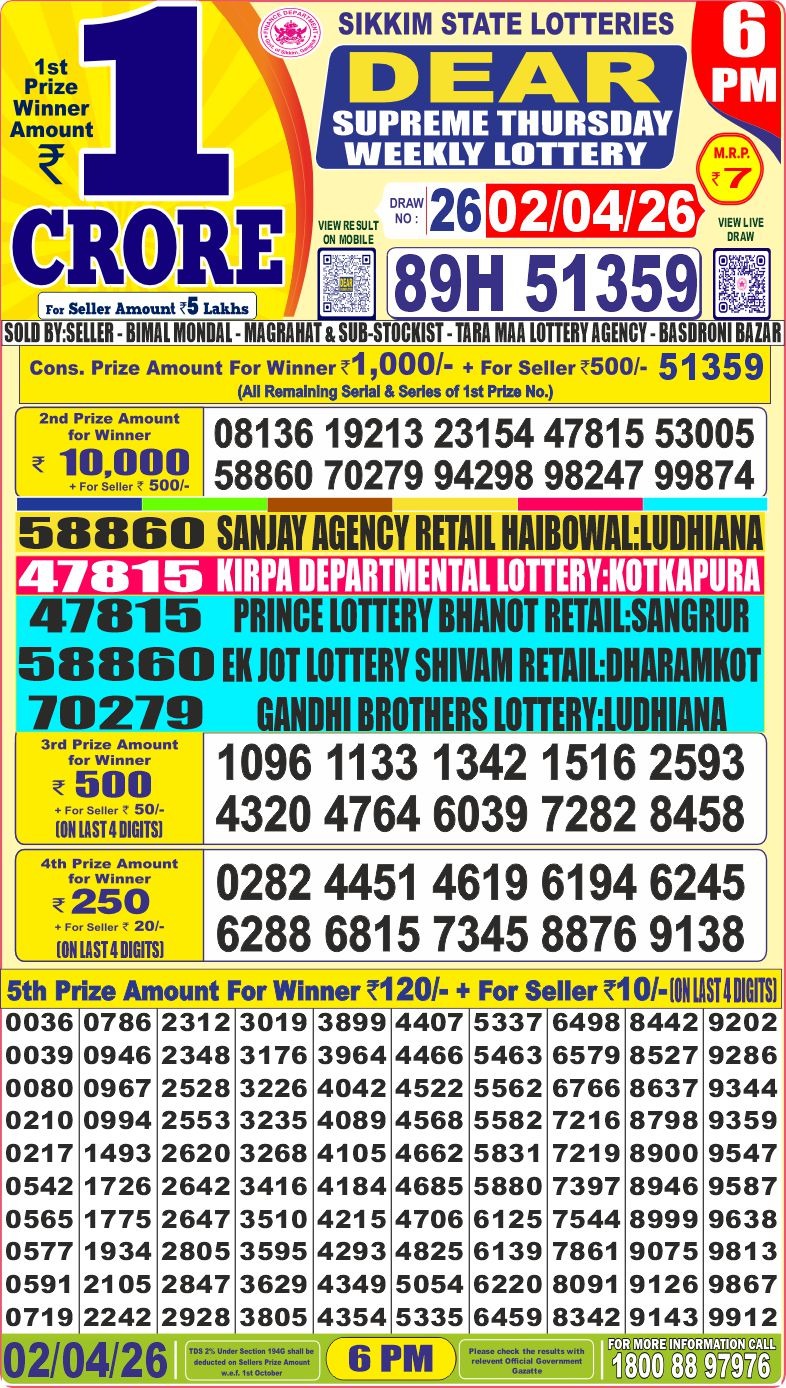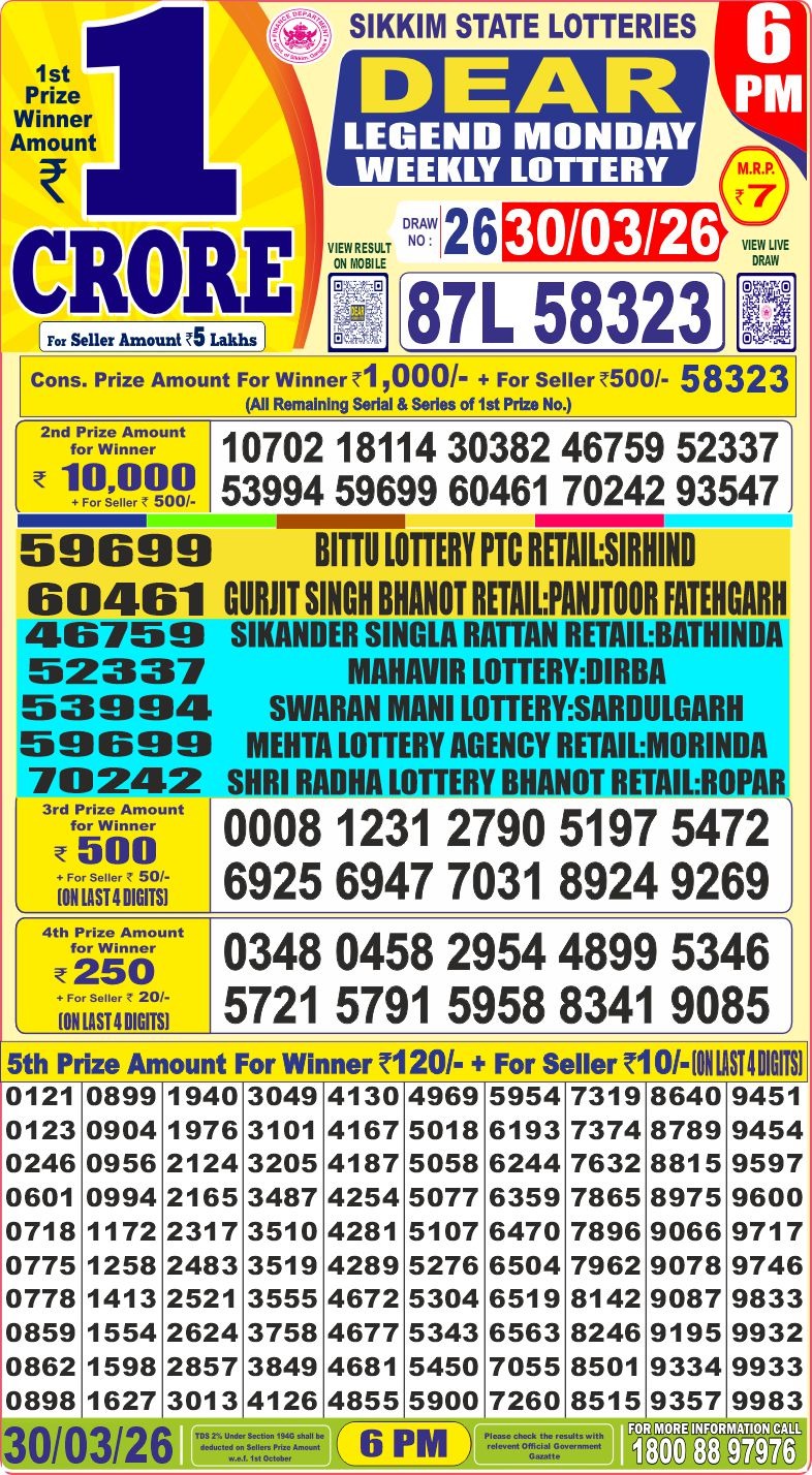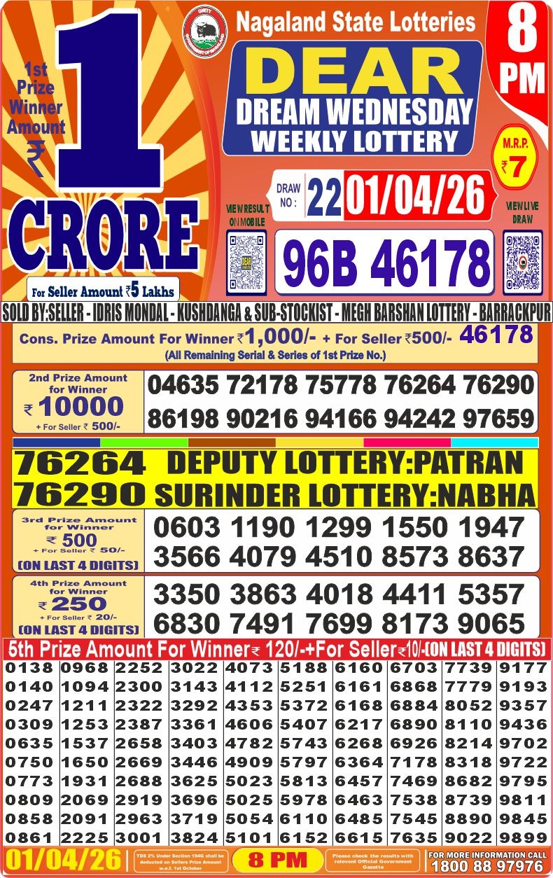 It is information that tomorrow ( 26/01/2024) There will be no any lottery draw today the ocassion of Republic Day. Have a nice day