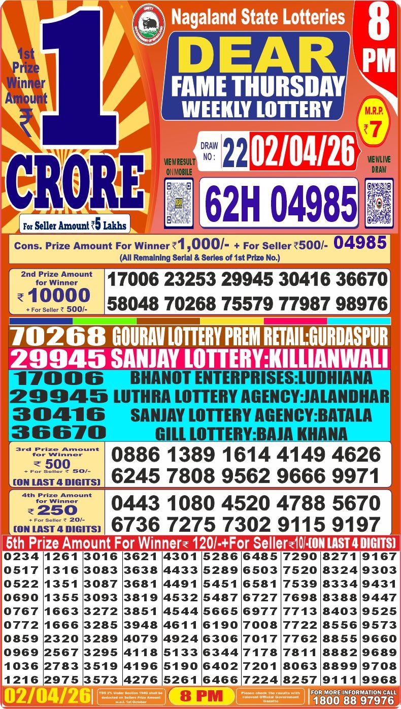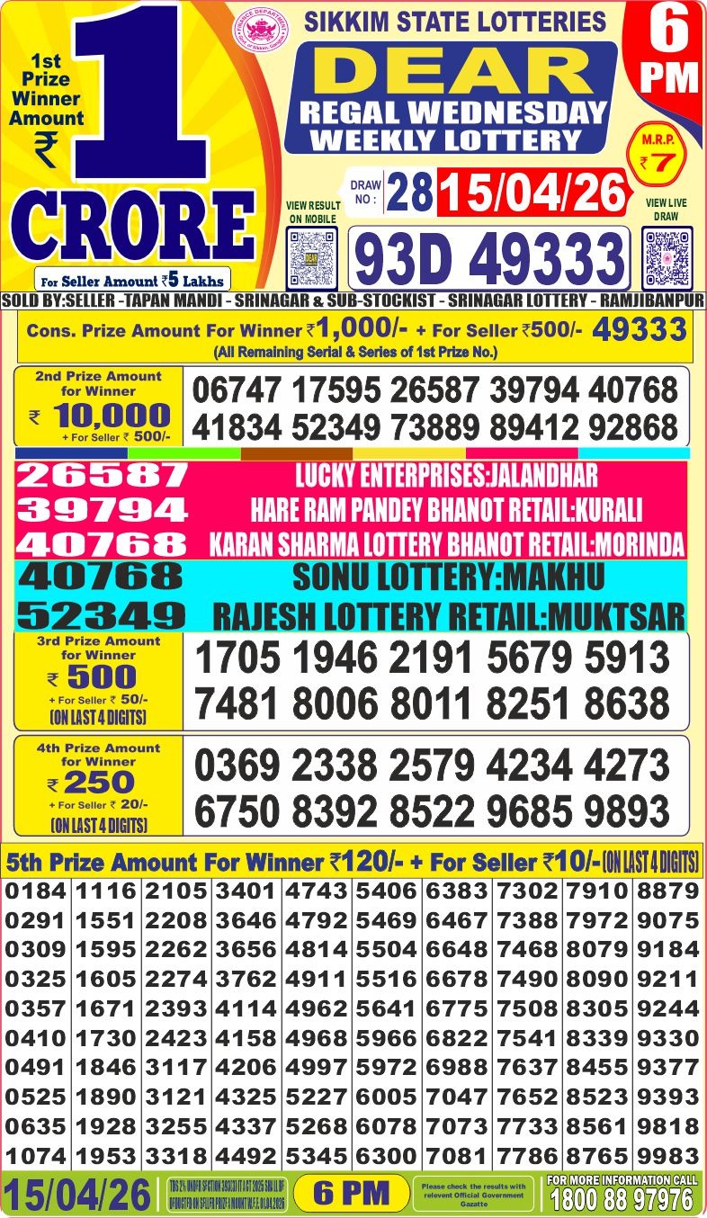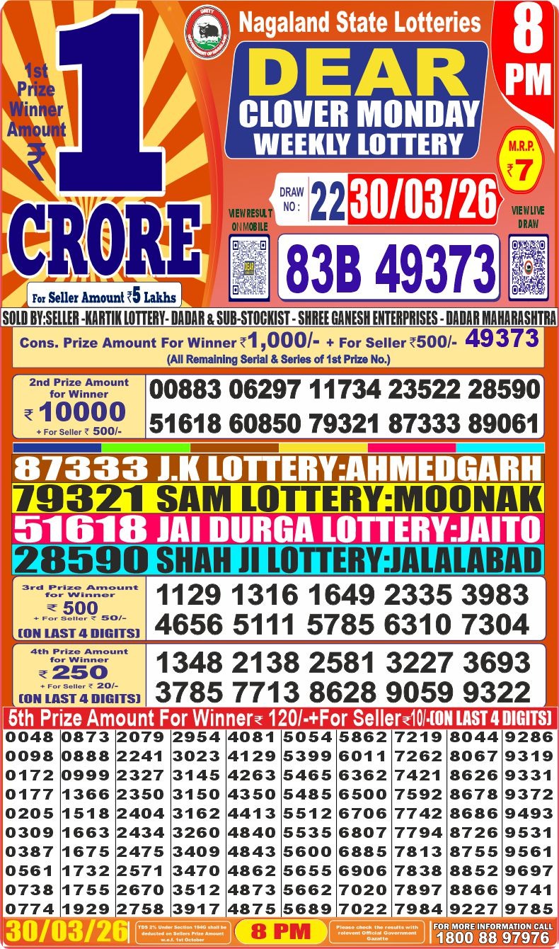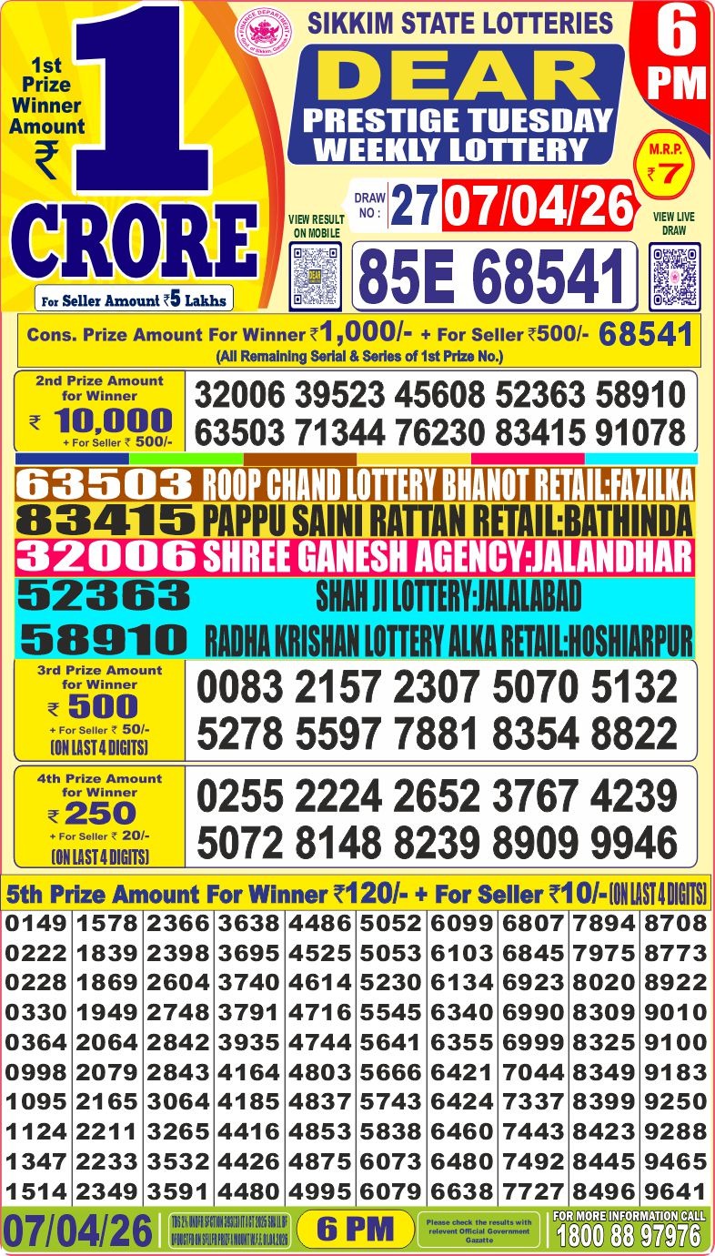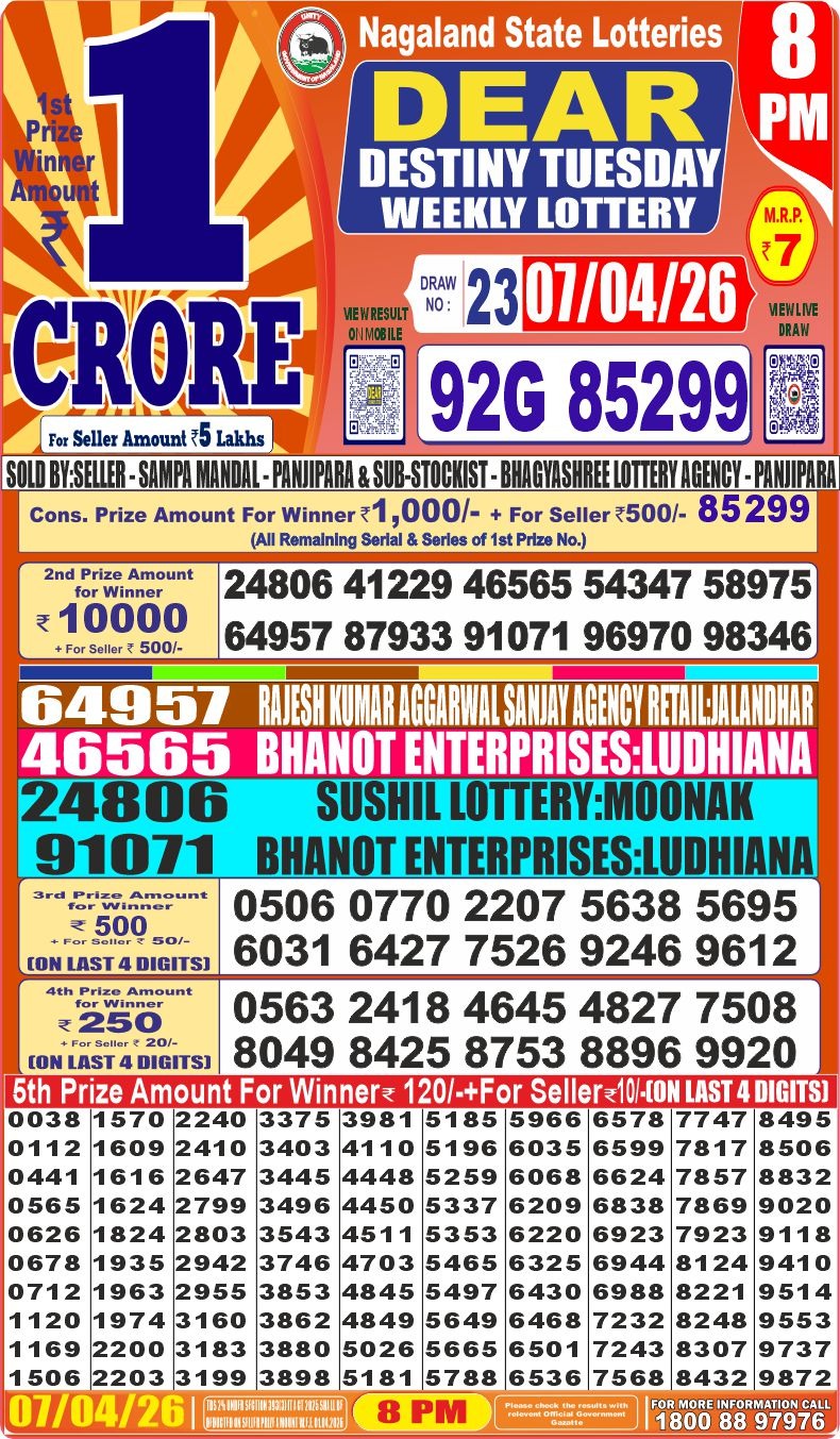 It is information that tomorrow ( 26/01/2024) There will be no any lottery draw today the ocassion of Republic Day. Have a nice day