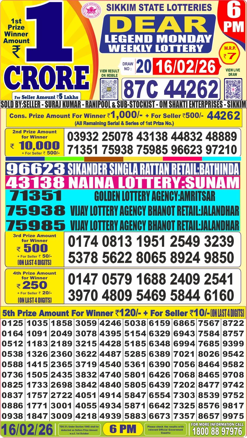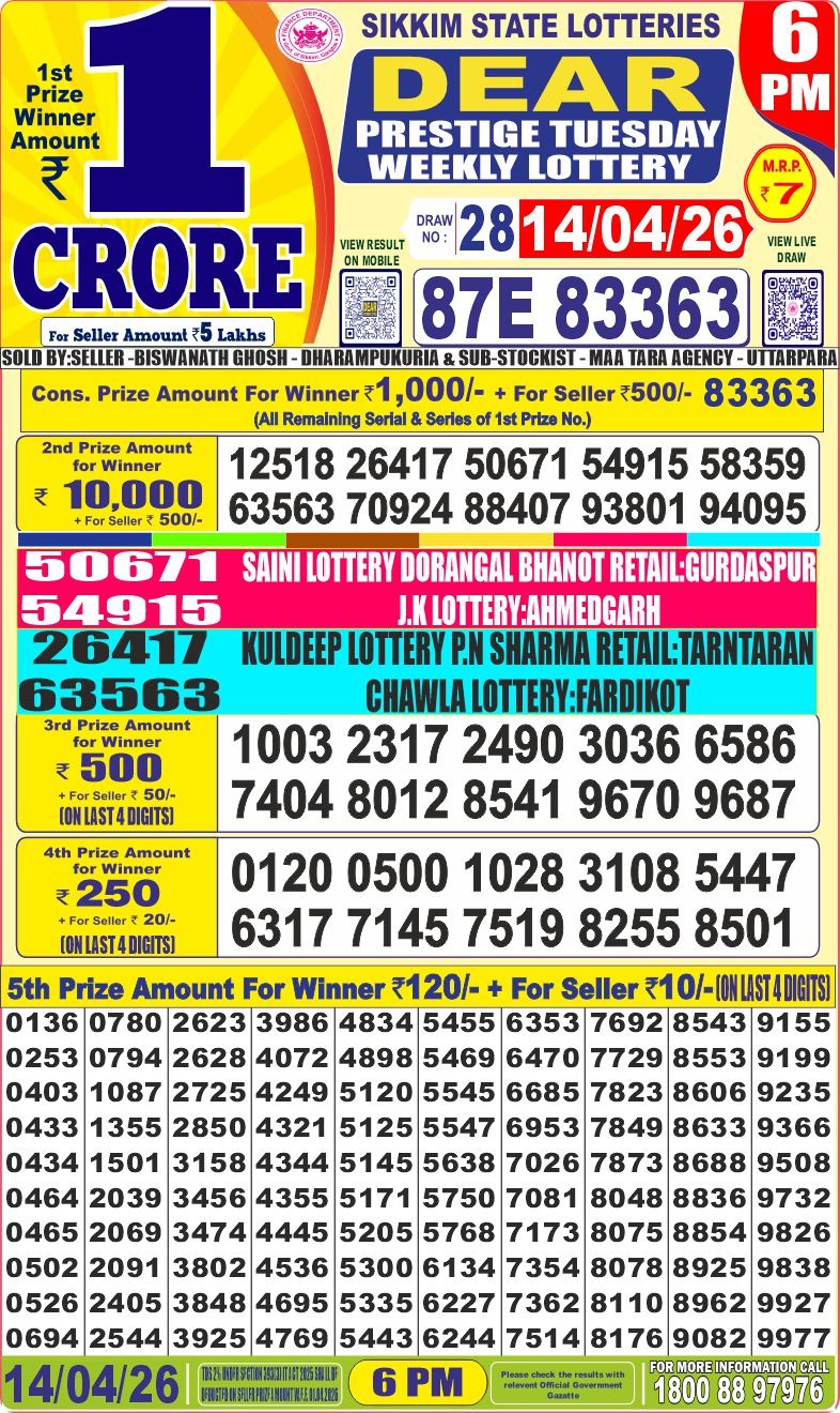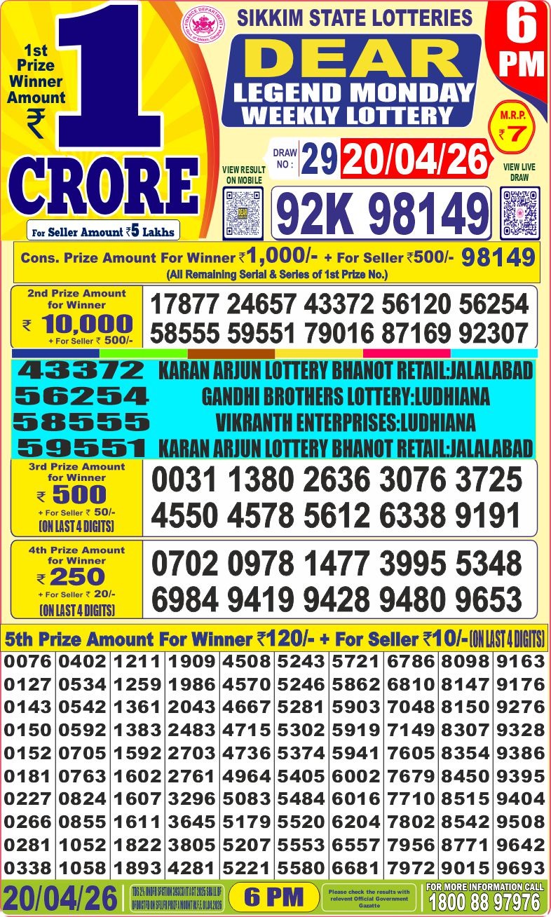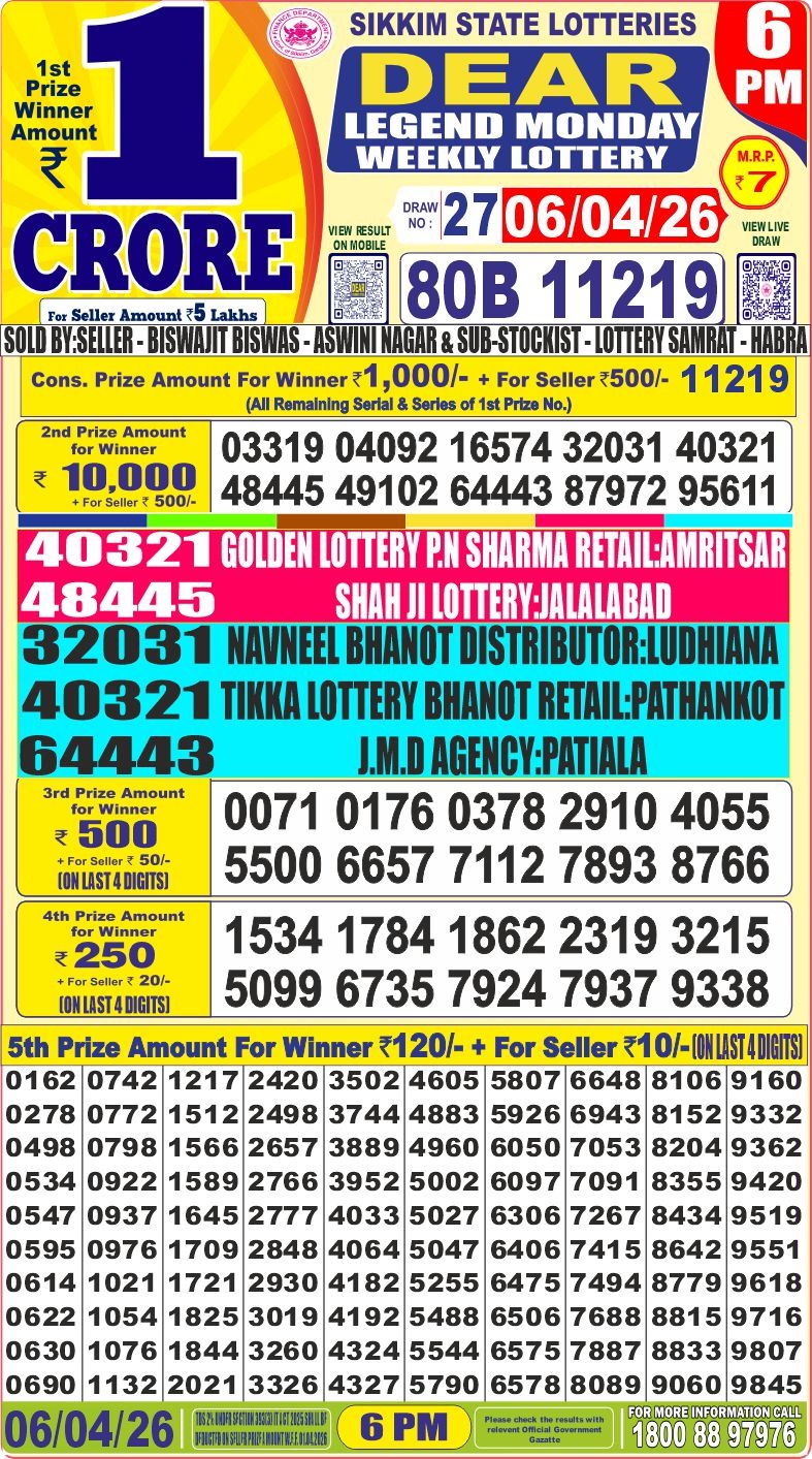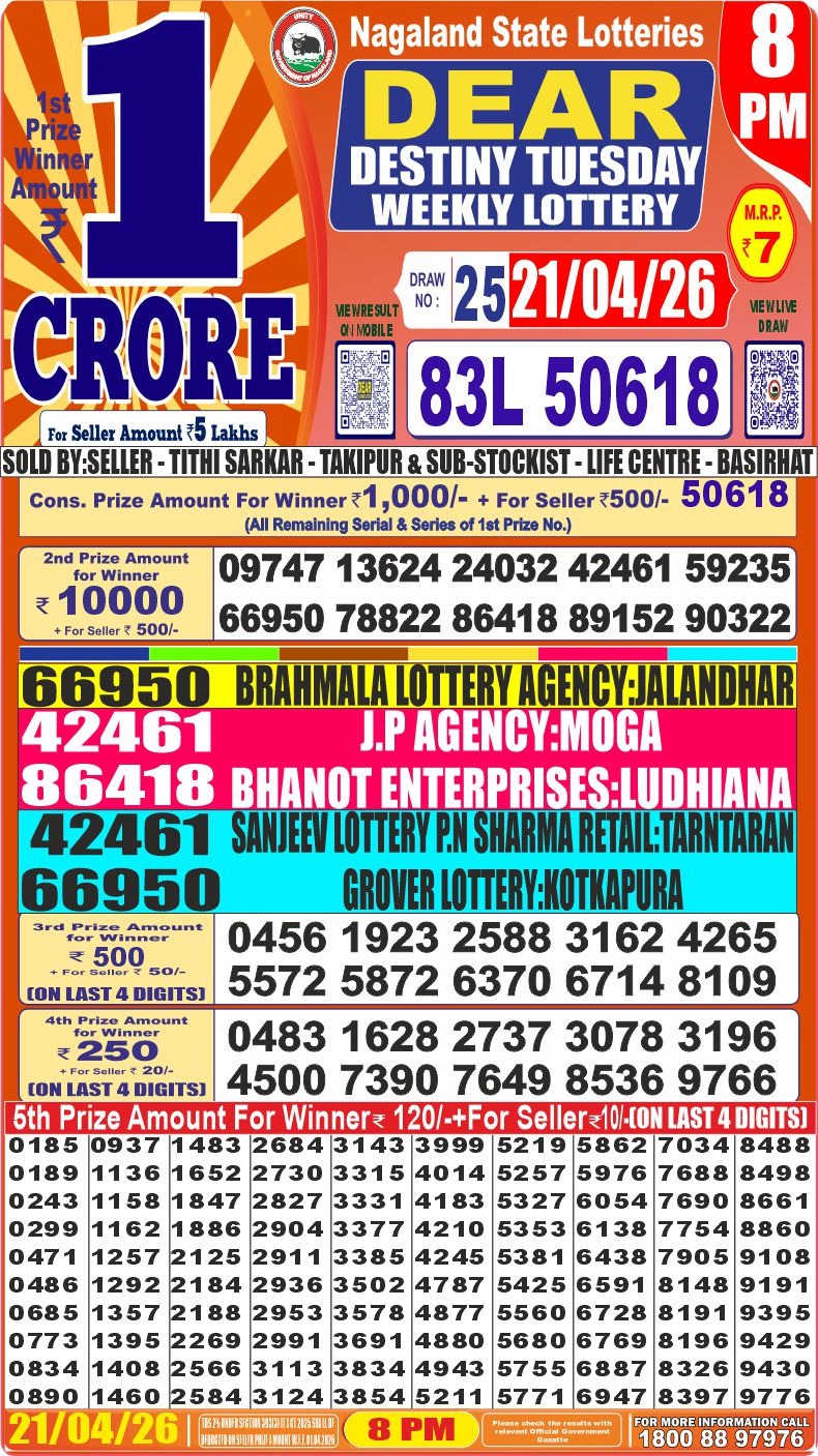 It is information that tomorrow ( 26/01/2024) There will be no any lottery draw today the ocassion of Republic Day. Have a nice day